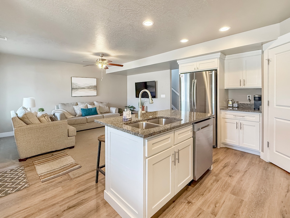 Our townhome is the perfect place for you to stay during your visit to beautiful Bear Lake. The Honey Bear sleeps up to 12 people with 1 King Bed, 3 queen beds, and 4 twins. All beds have their own room with exception of the twins, which are set up as bunk beds in a room ideal for smaller guests. You'll find the location is ideal, central to Garden City with quick access to the Bear Lake Marina, several beaches, restaurants, trails for off-road sports, and grocery stores.