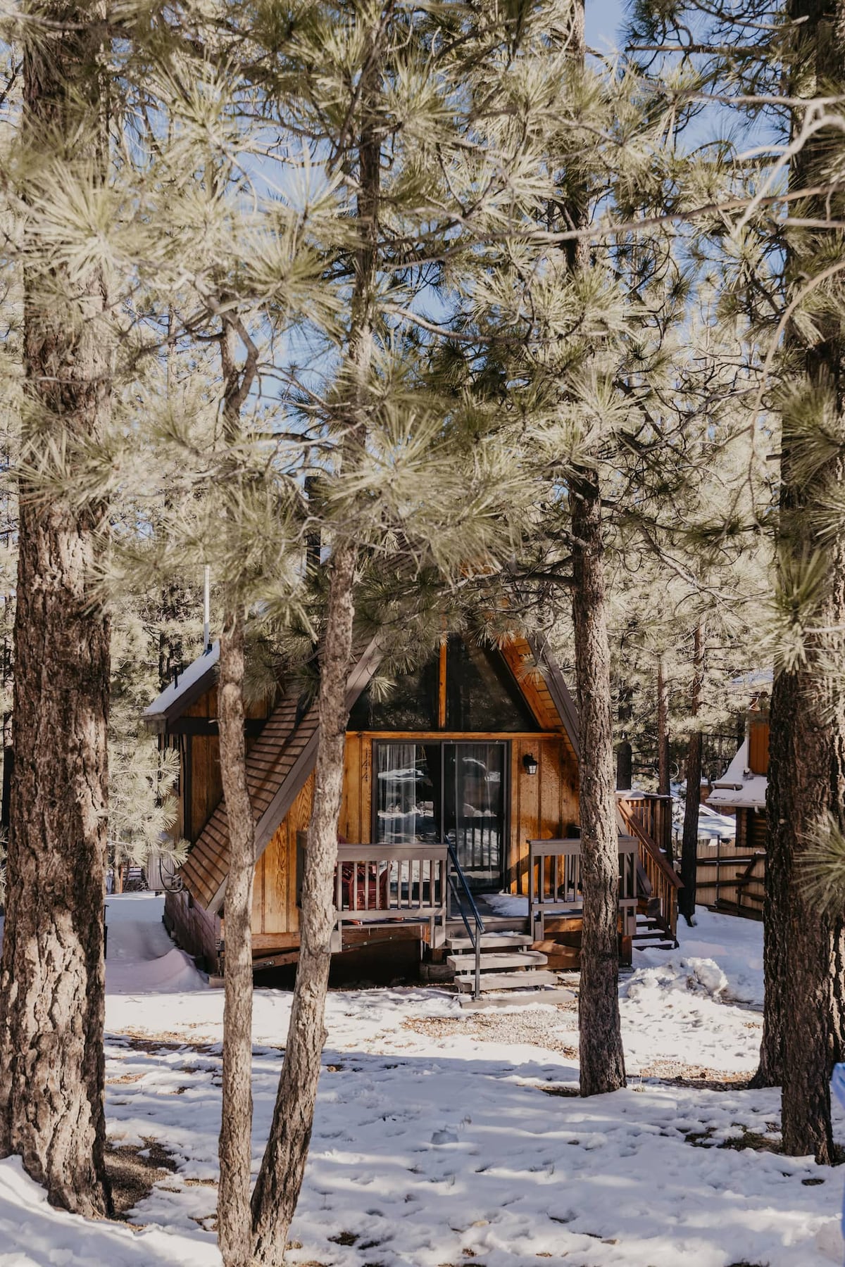 Our family cabin is located in the heart of lower Moonridge, just a short drive to the lake, village shopping, zoo, and many more attractions. Nestled in a quiet neighborhood surrounded by trees, the back of our property borders San Bernardino National Forest hiking and biking trails. This is a perfect getaway with the ambiance of a mountain cabin in the woods, pet friendly, with modern features like WiFi, TV and access to multiple streaming services, and of course, a wood burning fireplace.