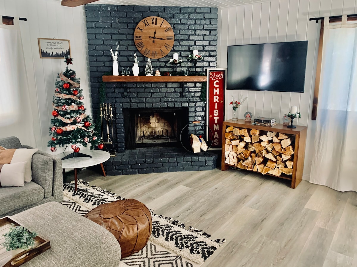 Miles of National Forest and trails right off the back deck, but still just minutes from all that Big Bear has to offer–hiking, skiing, and restaurants. Featured in The Cabin Chronicles S1E8 - Mid-century modern vintage & retro style furniture - Sleeps 5 - Walk-off access into the National Forest from deck with miles of hiking trails - Cozy, wood burning fireplace w/ gas starter - 8" overhead rain shower - Quiet neighborhood on dirt road - 4 burner propane outdoor BBQ grill - Absolutely NO PETS