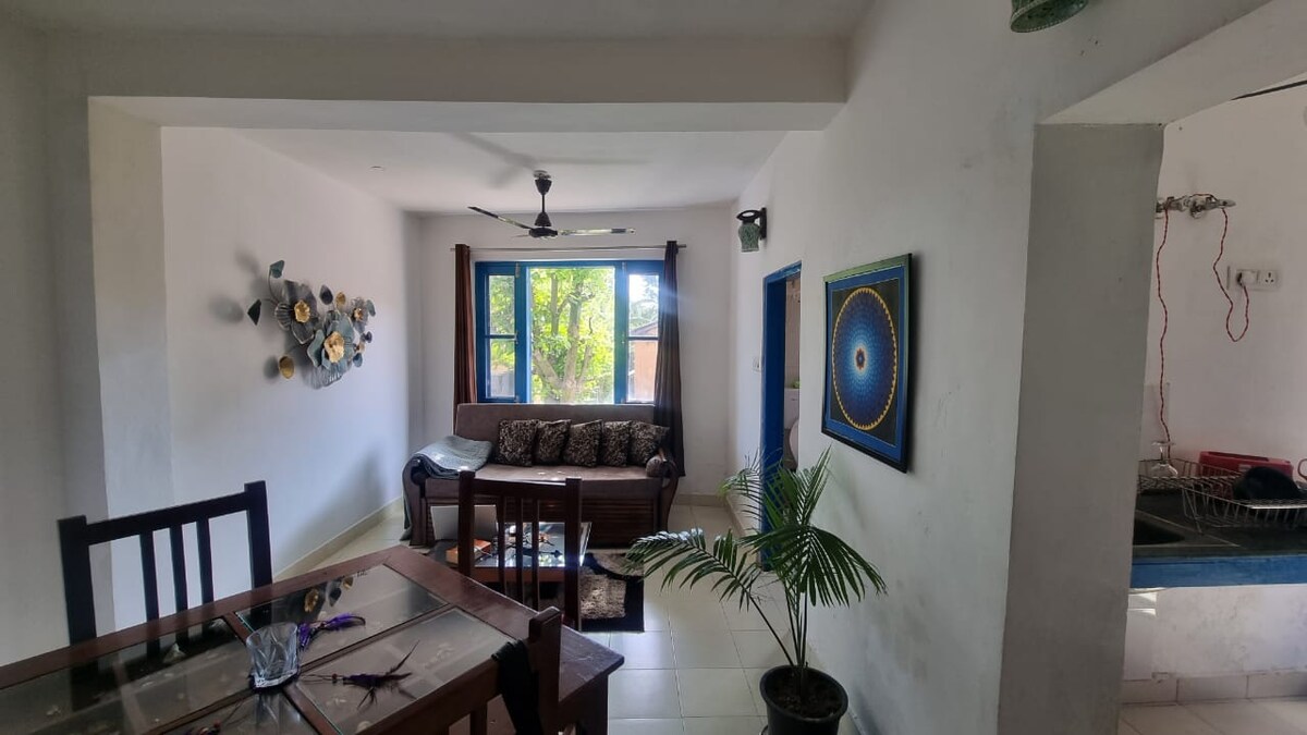 Keri is a spacious studio with windows overlooking greenery and mountains on the main road. Landing is 10-15 minutes by walk and a lot of cafes are nearby. Also, a super store and gym is 2 minutes away. The best part is that you can walk to this place if you get down at the Colony bus stand (300 mtrs). The studio has a kitchen and wifi to enjoy coffee and self cooked meals while working. You also get access to a shared balcony. It is a chic instragam friendly place for your next WFH.