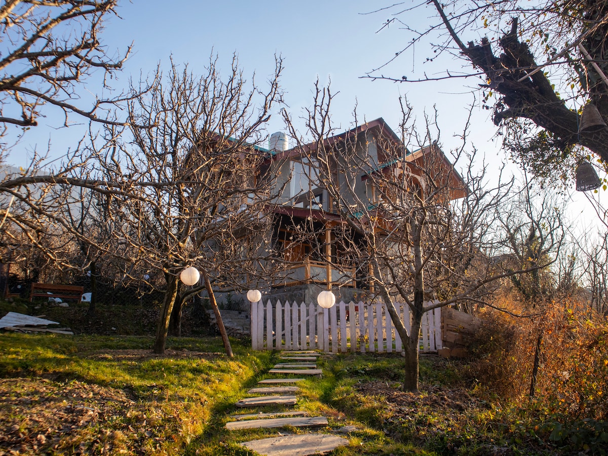 Enjoy rustic charm and modern chic with natural wood accents and earthy tones, creating a cozy atmosphere, right in the heart of Dharamshala. ✨ What Makes Our Home Special Enjoy stunning views of the Dhauladhar range from our garden. Our lush garden, filled with flowers and fruit trees, is perfect for relaxing or having your morning tea. Conveniently located, the local market, HPCA Stadium, tea gardens, and other attractions are within 5 km, making sightseeing and shopping easy