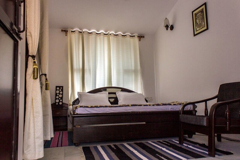 A floor with 2 rooms and an attic. Quaint clean rooms. With heating and fans. Hi speed internet - for work-cation and WFH home people, best for working couples/family with kids. Pet friendly. Free open parking near the property. Great views of farm fields and the snow capped Dhauladhars by the river. Perfect for folks who like quiet and peace with basic comfort and amenities, freshly cooked hygienic meals available. Clean toilets with hot shower and laundry facility - NOT ATTACHED to the rooms.