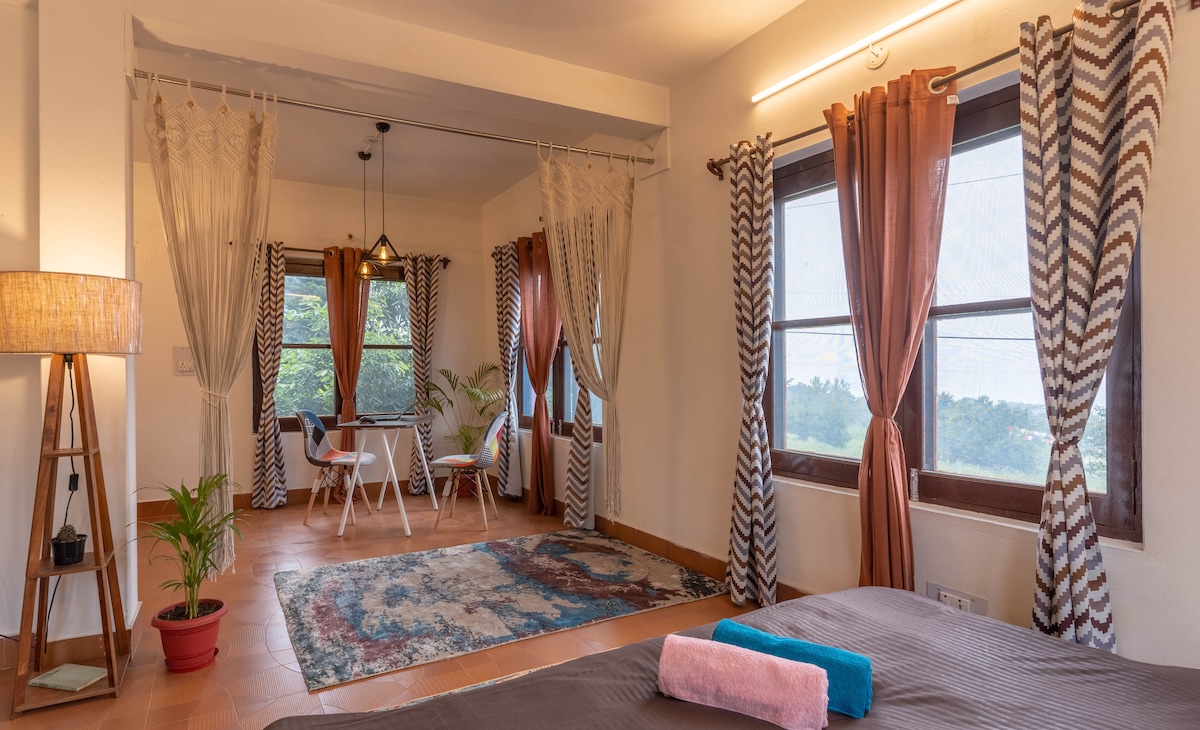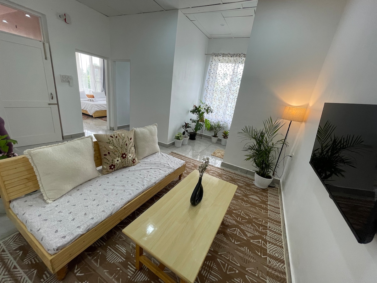 The Space Above BnB is a thoughtfully decorated home to feature art, coffee, and mindful living to create the peaceful environment for a relaxing stay. Located right above The Other Space Cafe in Jogiwara Village, this home comes equipped with all the modern amenities one needs. Guests have a big open terrace garden to enjoy the view of the Dhauladhar mountain range, a dedicated work area with fast internet, and a cafe right below which offers all guests a complimentary breakfast everyday.
