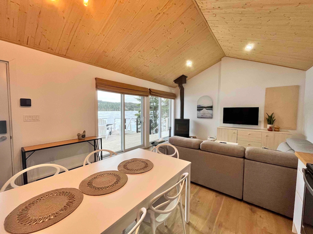 Envie d’une escapade en pleine nature? Ce nouveau chalet à flanc de montagne et de style scandinave saura vous charmer. Avec son terrain de plus de 1 million pieds carrés, vous pourrez profiter sur place d’un lac, d’une rivière, de sentiers pédestres et bien plus! Vous séjournerez dans un endroit où la détente et la nature sont au rendez-vous. Bien équipé, le chalet n’attend que vous! Conçu pour 2 personnes mais pouvant accueillir jusqu’à 3 personnes avec le canapé-lit (simple).