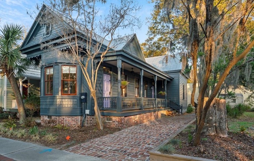 UPDATED LUXURY & FASTIDOUS CLEANLINESS in one of historic OldTown Bluffton’s coziest carriage houses. OldTown’s vibe is just plain fun. Stoll two blocks to super restaurants, night life, art galleries, boutiques, antebellum homes & lush waterfront parks on the idyllic May River. Built in 2018 w/ quartz counters, private bedroom w/ plush king-size bed, upscale bath w/ soaking tub, bright living/dining room, full kitchen w/ gas cooktop, romantic rocking-chair porch up in moss-draped oaks.