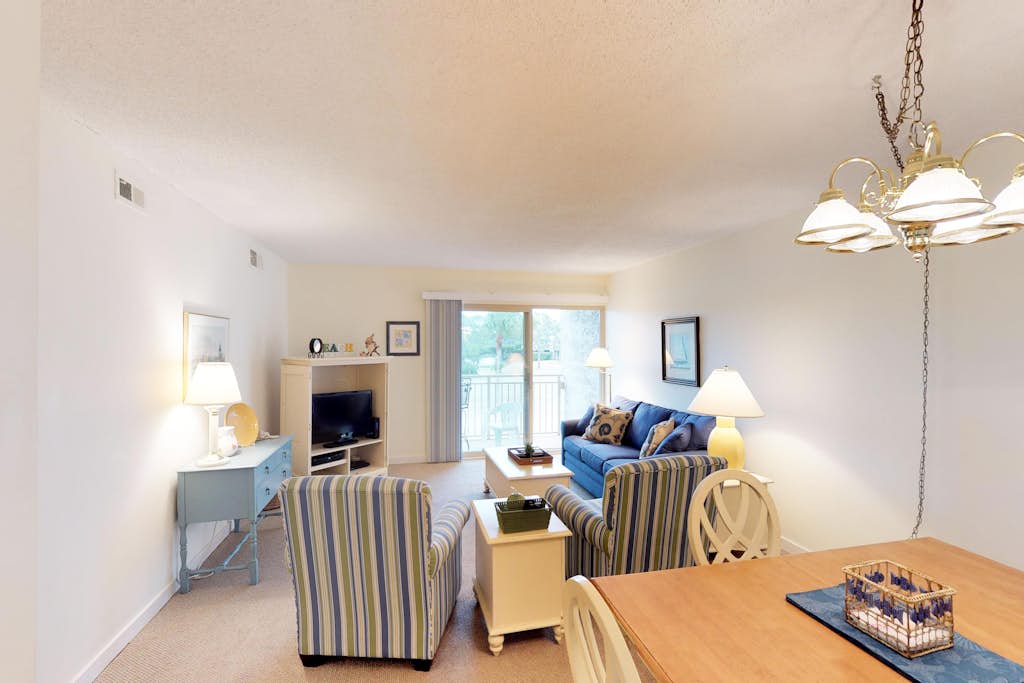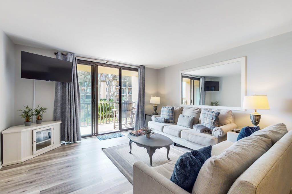 Adventure is around the corner when you book your next getaway at this 2-bedroom, 2.5-bathroom vacation rental in Hilton Head Island. The condo offers a fully stocked coffee bar, a full kitchen, Smart TV, and a relaxing private patio surrounded by tropical plants. Spend your days relaxing by 3 seasonal pools, practicing your swing at nearby golf courses, shopping at Coligny Plaza, or enjoying a day of family fun on Alder Lane Beach! Return home to unwind with dinner and a movie night.