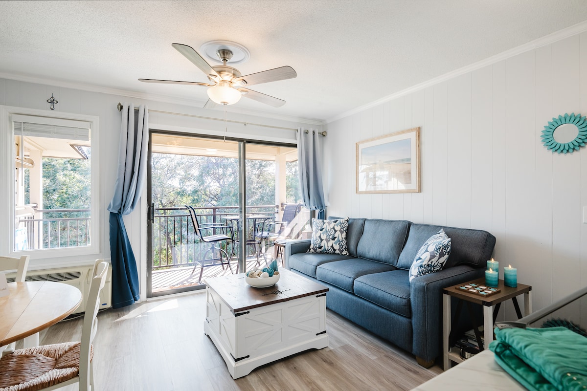 Light and spacious beach-side condo centrally located within a gated community. Walk to the beach via one of several private beach accesses or to the community’s pools, grills, courts, gym, and play areas within minutes. Located in a quiet and relaxed area away from the bustle of the island’s southern end makes this perfect for families and retirees alike. Golf courses, stores and entertainment are only a short drive from the property. No-contact check-in using your personal numeric code.