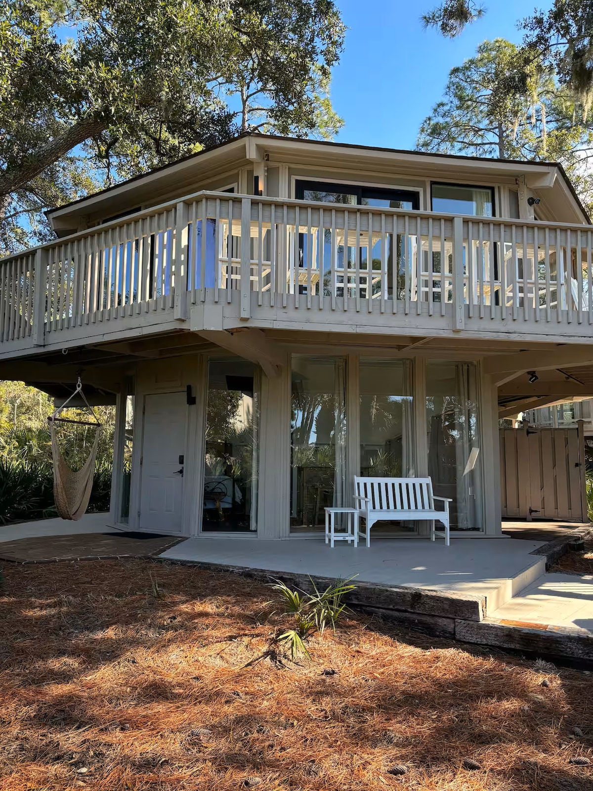 Roxy’s Hideaway — #1 Sea Pines Treehouse, steps from Harbour Town & RBC Heritage! Enjoy exclusive comfort in nature, close to shopping, dining and more. Pet-friendly and ideal for high-end travelers, including pro athletes. Experience unmatched service and bespoke amenities—no fluff, no gimmicks. Our real guests write the story; we just provide the setting. Relax in our hammock throne, surrounded by nature and serene unaugmented ocean views, with pool access at the Harbour Town Pool!