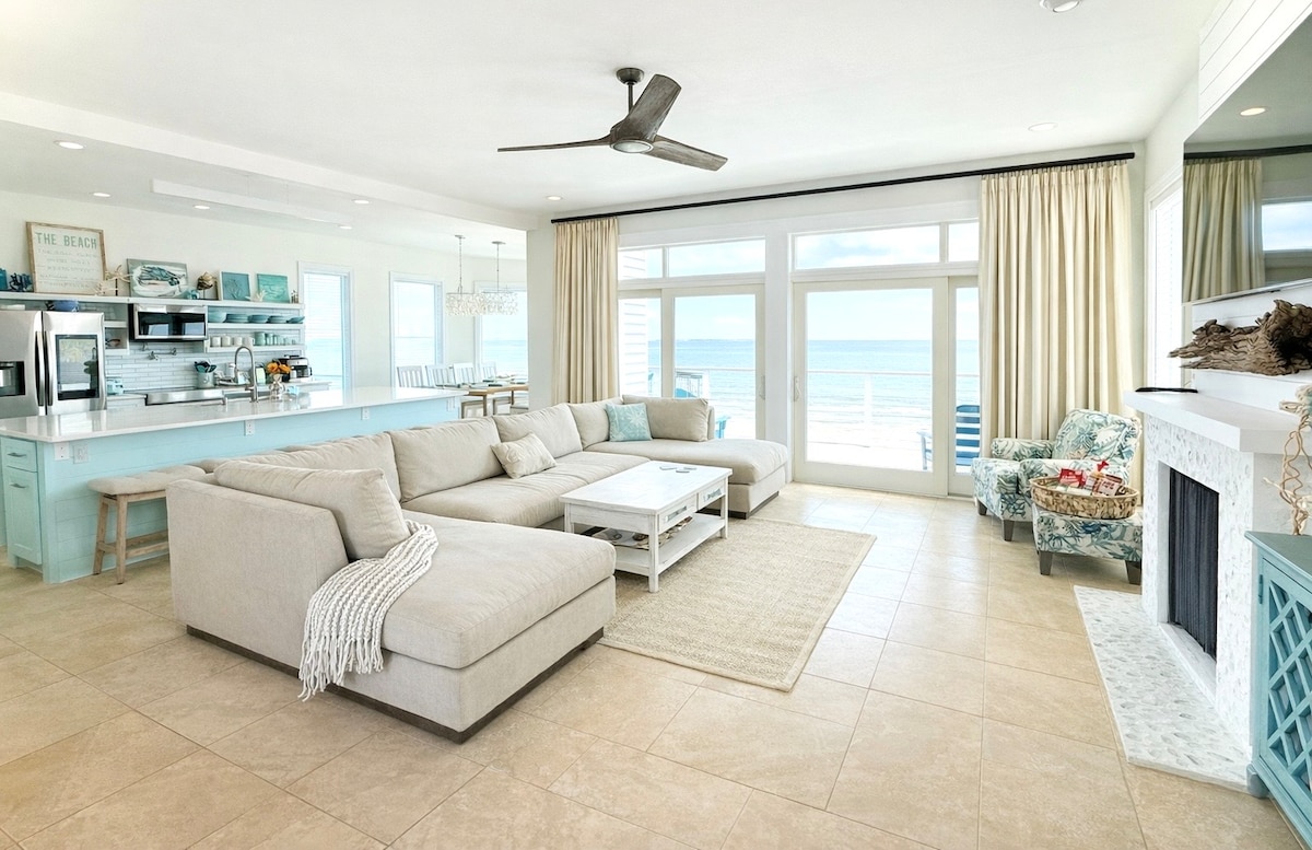 CUSTOM BEACHFRONT HOME ON GORGEOUS LOW COUNTRY BEACH. Custom beachfront home with unparalleled views! Beautifully but comfortably decorated in low country beach style. All the comforts of home. Feels like your own private paradise. 4 bed 3 1/2 bath,Sleeps 12 with TWO King master en suites. Stainless Steel Kitchen, private boardwalk to the beach, Golf Cart, Kayaks, beach towels, chairs, umbrellas, 2 car passes... all included. Make memories that will last forever.