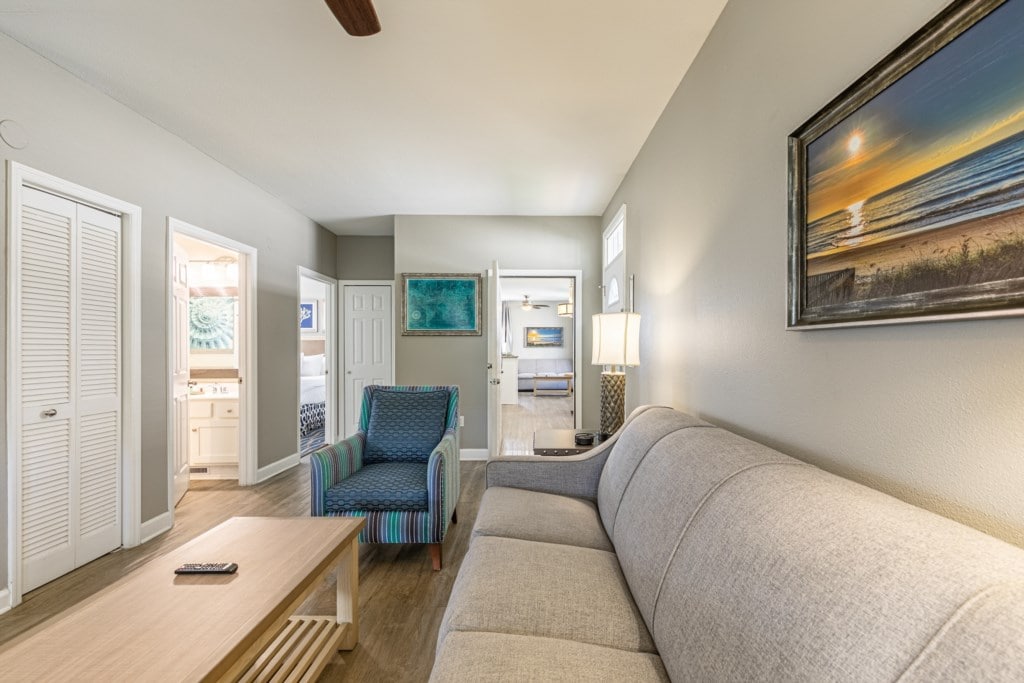 Edisto Island, off the southern coast of South Carolina, is a true beach escape. Equal parts relaxation and recreation, the resort offers 300 wooded acres of sleepy lagoons that invite appreciation for the slower southern pace of life. Wyndham Ocean Ridge|1BR/1BA King Bed Balcony Suite • Size: 673 - 711 • Kitchen: Full • Baths: 1 • Accommodates: 4 Guests • Beds: King Bed - 1 Queen Sleeper Sofa - 1