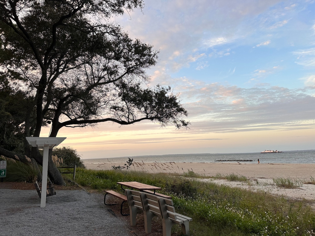 Fall is the perfect time to be at the BEACH! Welcome to your Hilton Head Island getaway! Beautifully renovated condo, top floor, walking distance to the beach with Panoramic Ocean Views! Ideal for families, couples, girls' weekends, and golf enthusiasts! Enjoy amazing sunrises from the patio. Located in a gated complex with access to the most beautiful beach in all of Hilton Head Island via a private boardwalk. Easy keyless entry, located in Building 2. Superhost where hospitality is #1!