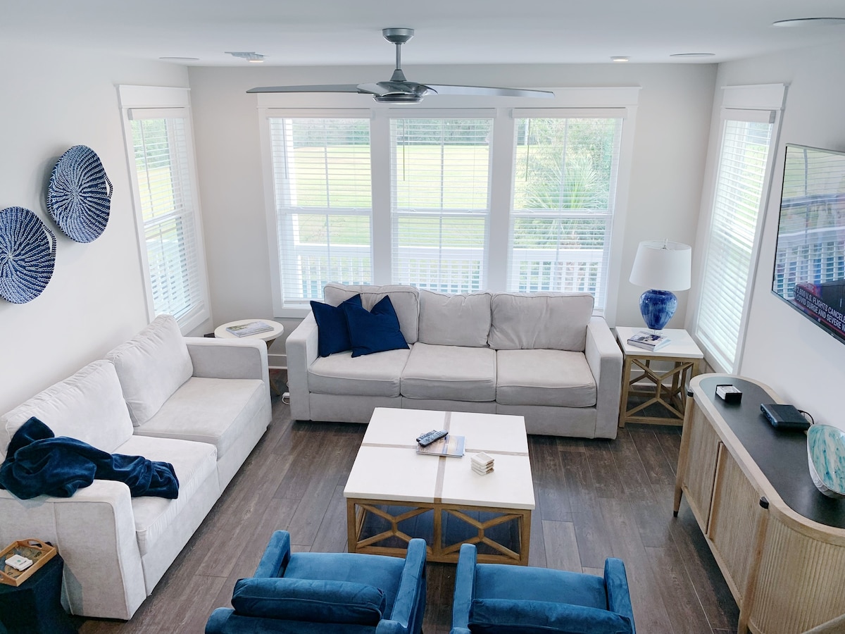 步行8分钟即可到达海滩,包括高尔夫球场/Ten/PB*,2张加大双人床*