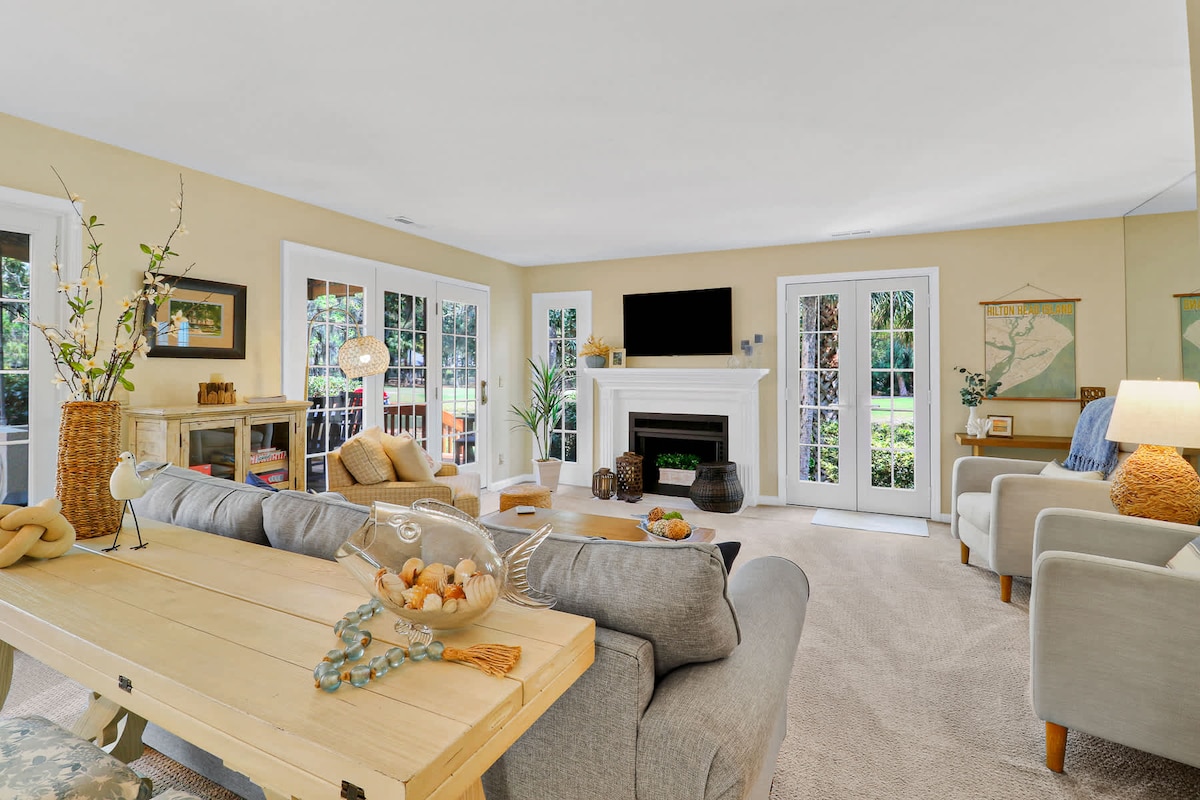 Welcome to your perfect family getaway on Hilton Head Island! This vibrant 3BR, 2.5BA luxurious villa is professionally decorated, accented with inviting, colorful coastal decor throughout. The villa offers a fully-remodeled kitchen, a spacious and comfortable living area with plenty of ways to relax and unwind. Outside, there is a large, private patio with a gas grill, an outdoor dining set and fast access to five community swimming pools and the beach. Snowbirds and long-term guests welcome