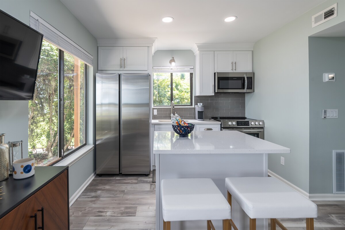 海滨豪华!特大号床65英寸电视匹克球和酒吧