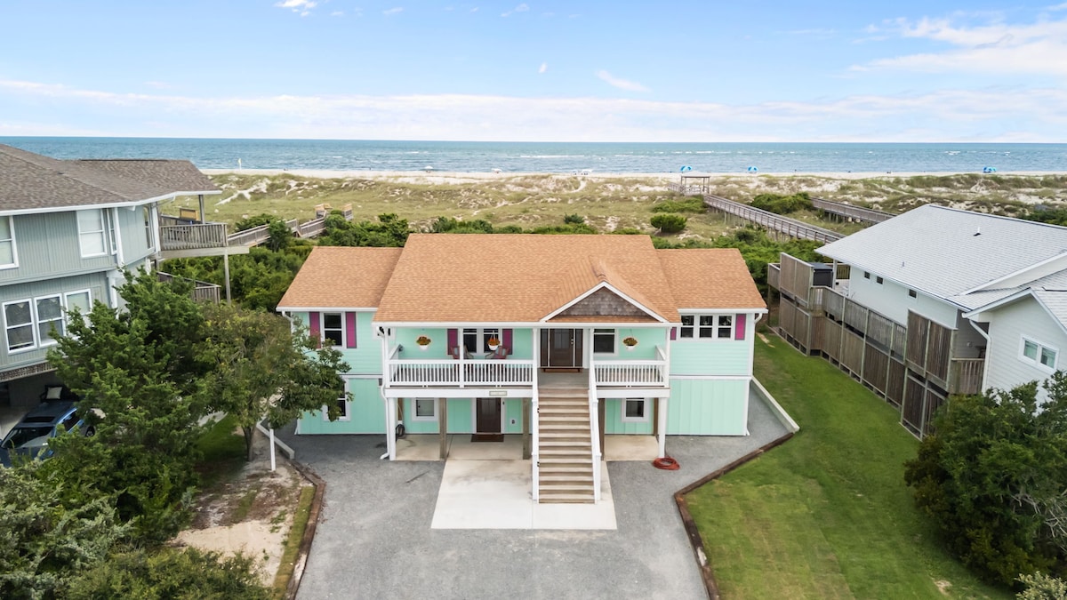 NEW Remodeled Kitchen & Picture Windows as of Jan 2026!--Come live Beachfront on Emerald Isle. Where all your worries melt away! Watch the waves break along the shore, see dolphins swim along the coastline, make lifelong memories with family and friends. Feel right at home with freshly made beds, linens included, well-stocked kitchen. Travel light: all the basics provided to get your vacation started. West side of the duplex. (Other side is used only by owners.) 4BD-3 King Beds +4 twin bunks