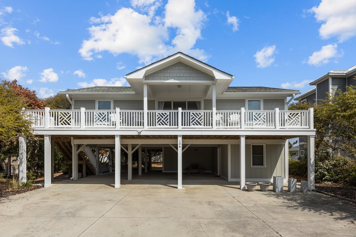 Soundfront stunner on Harkers Island. Your front-row seat to NC's Crystal Coast: a quiet waterfront home w/ your own private beach. Bring your boat and leave it tied off at our private dock. The main-level deck is the star - sip sunrise coffee with 180° waterfront views and frequent dolphin sightings. House includes a two-person kayak + beach gear, new outdoor shower, blazing fast Wi-Fi, and sleeps 9 (3BR/2BA). Minutes to great eats on the island; Historic Downtown Beaufort just 20 mins away.