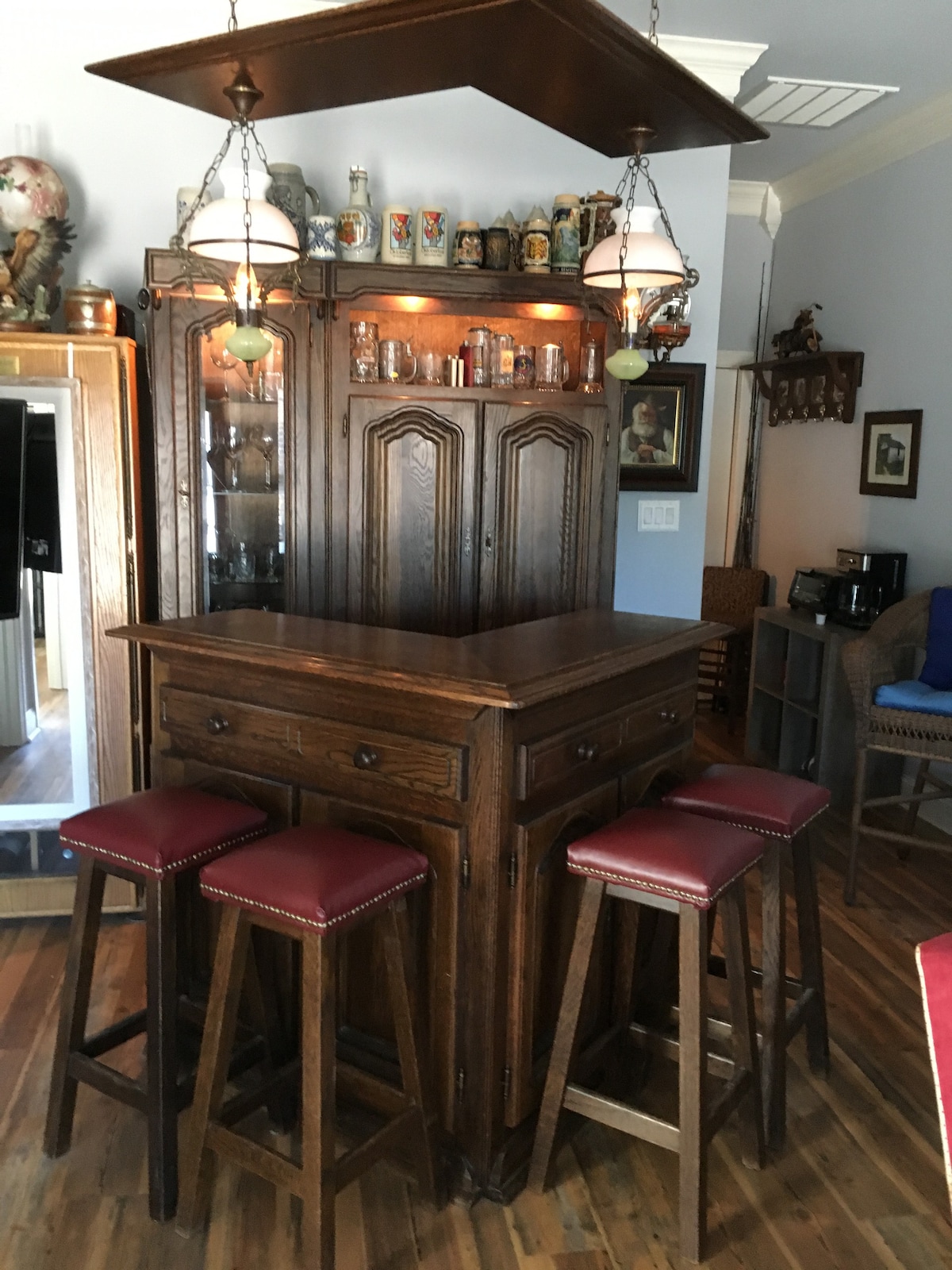 Pet friendly and centrally located within the town of Beaufort, this rental space is one of a kind! Bike or walk to shops, restaurants and attractions downtown. We provide the bikes! Beaufort has many special tours, historic sites , events, and fun things to do! After a busy day , relax on the top deck where the view is spectacular with sightings of wild ponies and egrets. Pet fee is $50 per stay payable separate to me . Please message me if staying longer than a week .