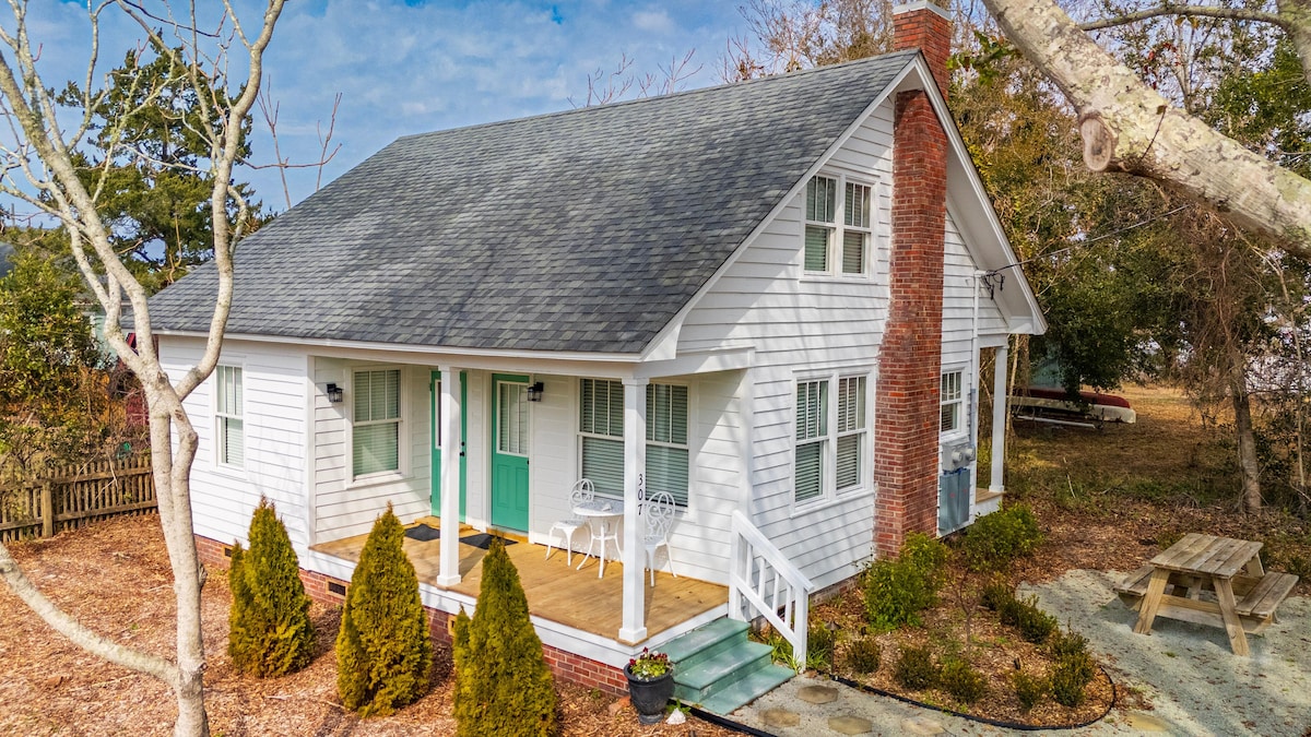 Secluded Beaufort cottage for two . . 1/2 block to Front Street and Taylor Creek. This is a convenient and comfortable location with short walk to the Beaufort waterfront shops, restaurants, museums, ferries and local sites. EV NovoCharge Duke Energy charging site located 2 blocks from cottage. Complimentary bikes, beach chairs, high speed Wifi with Roku streaming provided. We provide a safe living environment by following cleaning guidelines based on recommendations from CDC.