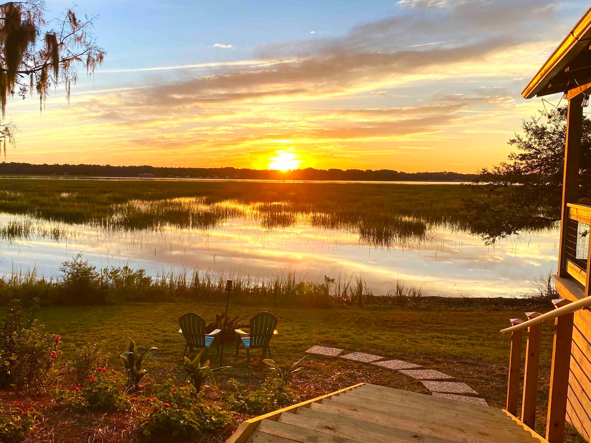 This tranquil, private, river retreat has incredible views of the marsh and the Beaufort River. Located in popular Pigeon Point, you are just a short bike ride or a 20 minute walk to the historic district and downtown Beaufort. I also have another more glamorous and exotic property next door see it at: airbnb.com/h/motm Enjoy fishing and crabbing right in your back yard at high tide or take a short walk down to the boat landing where you can watch people hand cast nets for shrimp!