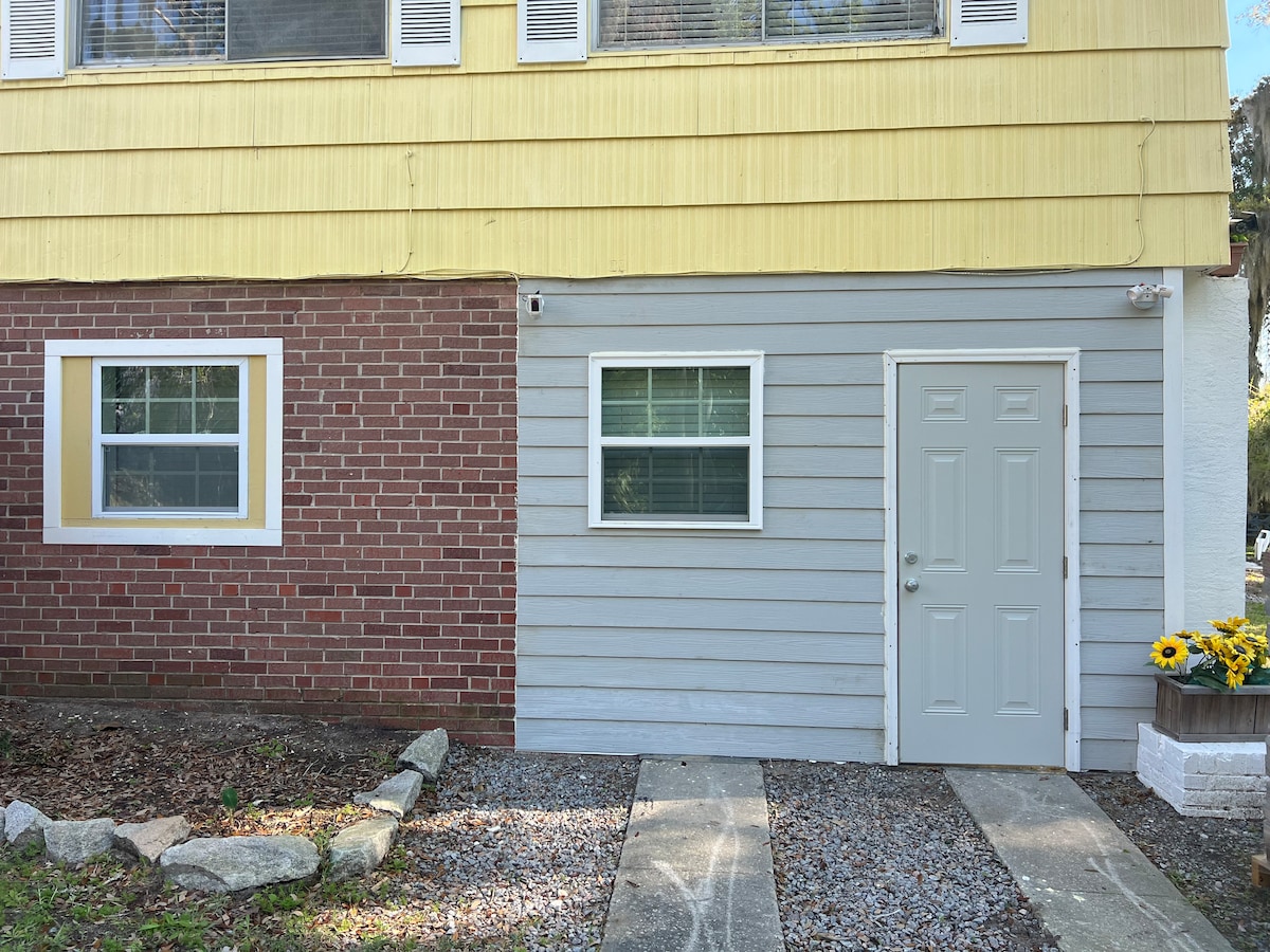 Nestled among oaks, this secure, private suite is attached to our home with a separate entrance. We're close to great views, restaurants and shopping, family-friendly activities, nightlife, and the beach. You’ll love our place because of the coziness, the views, and especially the location. It's about a mile from downtown Beaufort, adjacent to the Spanish Moss Biking and Hiking Trail, 6 miles from Parris Island MCRD, convenient to Hilton Head Island, and halfway between Charleston and Savannah.