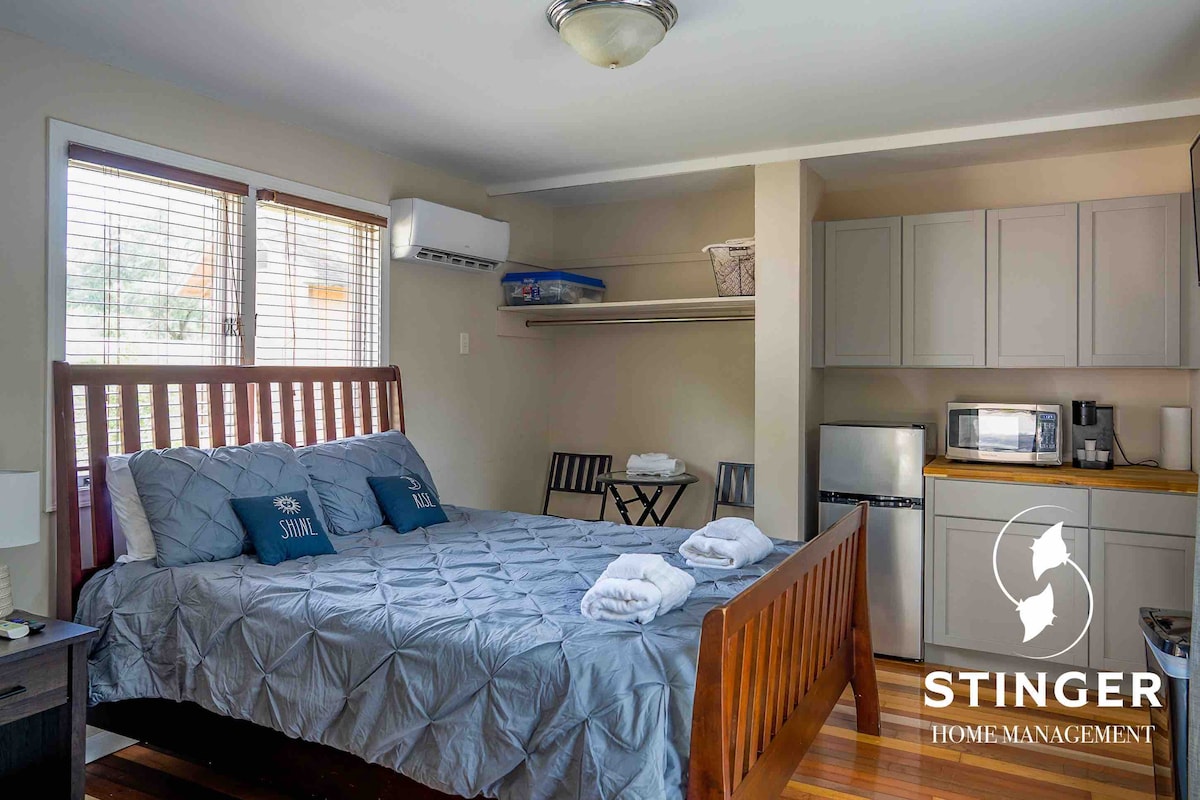 Welcome to the Sugar Maple Shack! A completely renovated carriage house in a charming neighborhood close to Old Town Bluffton. The perfect space for 2 with a king size bed, sitting area, kitchenette and updated bathroom. Enjoy the paver patio and grill outside. Parking is available in the driveway or on the main street. Old Town Bluffton is a bike ride away, easily access the beaches of Hilton Head in 20 minutes and downtown Savannah, GA in 35 minutes.