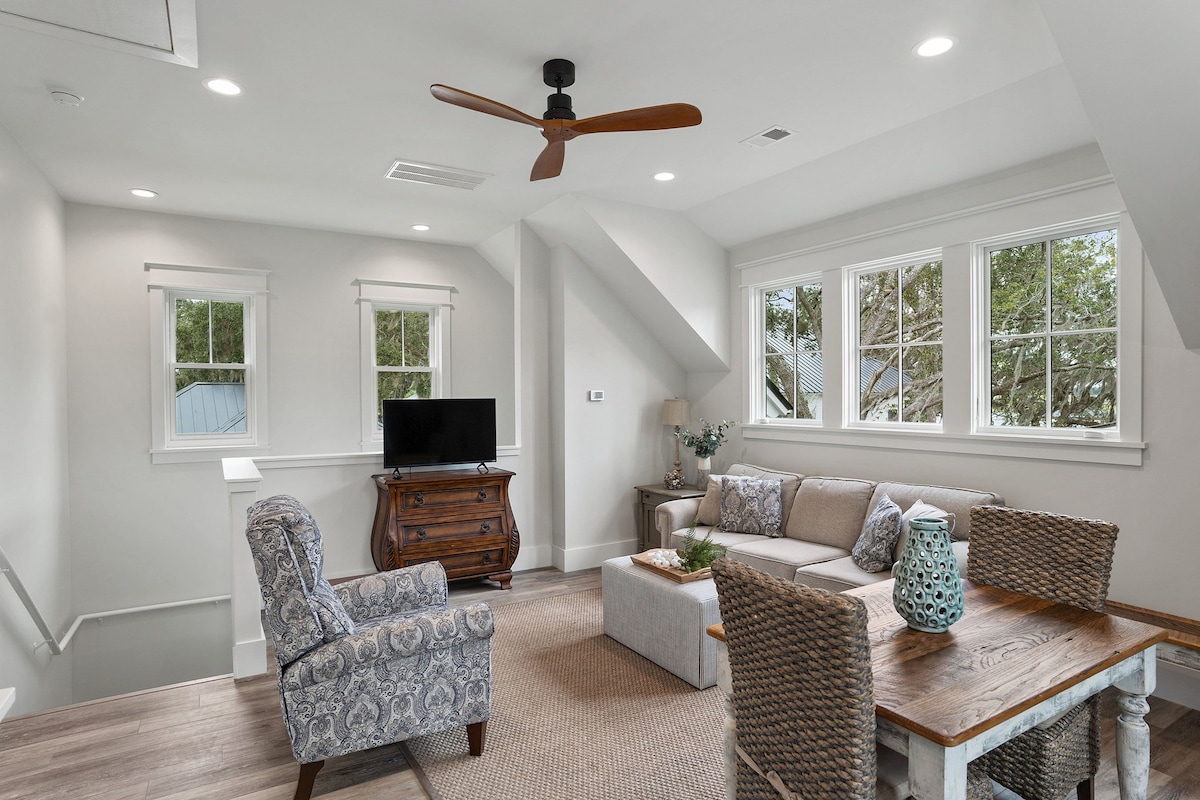 Completely remodeled second floor carriage house. All new kitchen and bath. Easy walk into historic downtown. Plenty of room to spread out. And, if you must, even space to do a little work. Less than a half mile to the Spanish Moss Trail in one direction and under a mile into our historic downtown.