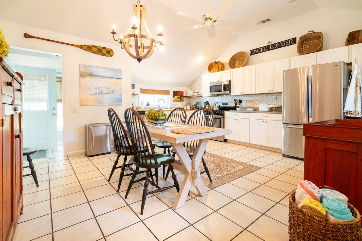 This adorable but well-appointed farmhouse cottage is located just a few streets from the heart of DT Beaufort, in the desired neighborhood of Pigeon Point, with easy access to the boat launch. Just a few blocks from Bay Street and the Marina, where great shopping and outdoor dining with breathtaking views of the harbor await. A relaxed and inviting space, style, and beauty combine to make this special cottage a much sought-after resting space for a memorable vacation with your loved one(s).