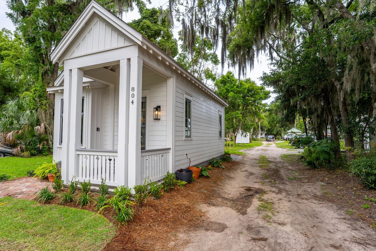 We love the laidback neighborhood, charming historic architecture, and the 5-block walk to the breezy waterfront along Bay Street. The cozy cottage is one bedroom, one bath, and a lovely living space on a postage stamp lot. The built-in breakfast nook is our favorite spot. Other features are the chic furnishings, 11’ ceilings, tall casement windows, and little front porch. Off-street private parking for one car and smart tv/wifi. The 400 SF cottage is named after the architect's daughter.