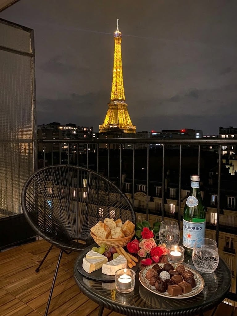 Top-floor haven with a large, sunlit balcony and an unobstructed Eiffel Tower view. Newly refurbished by a designer, it features an Italian shower, a comfy queen-size bed, and a quality sofa bed for groups of 3–4. Bright living/dining area, fast broadband and Netflix. Secure building in a vibrant neighborhood packed with cafés, restaurants, and shops. Metro station just 2 minutes’ walk. Perfect for couples, friends, or business stays.