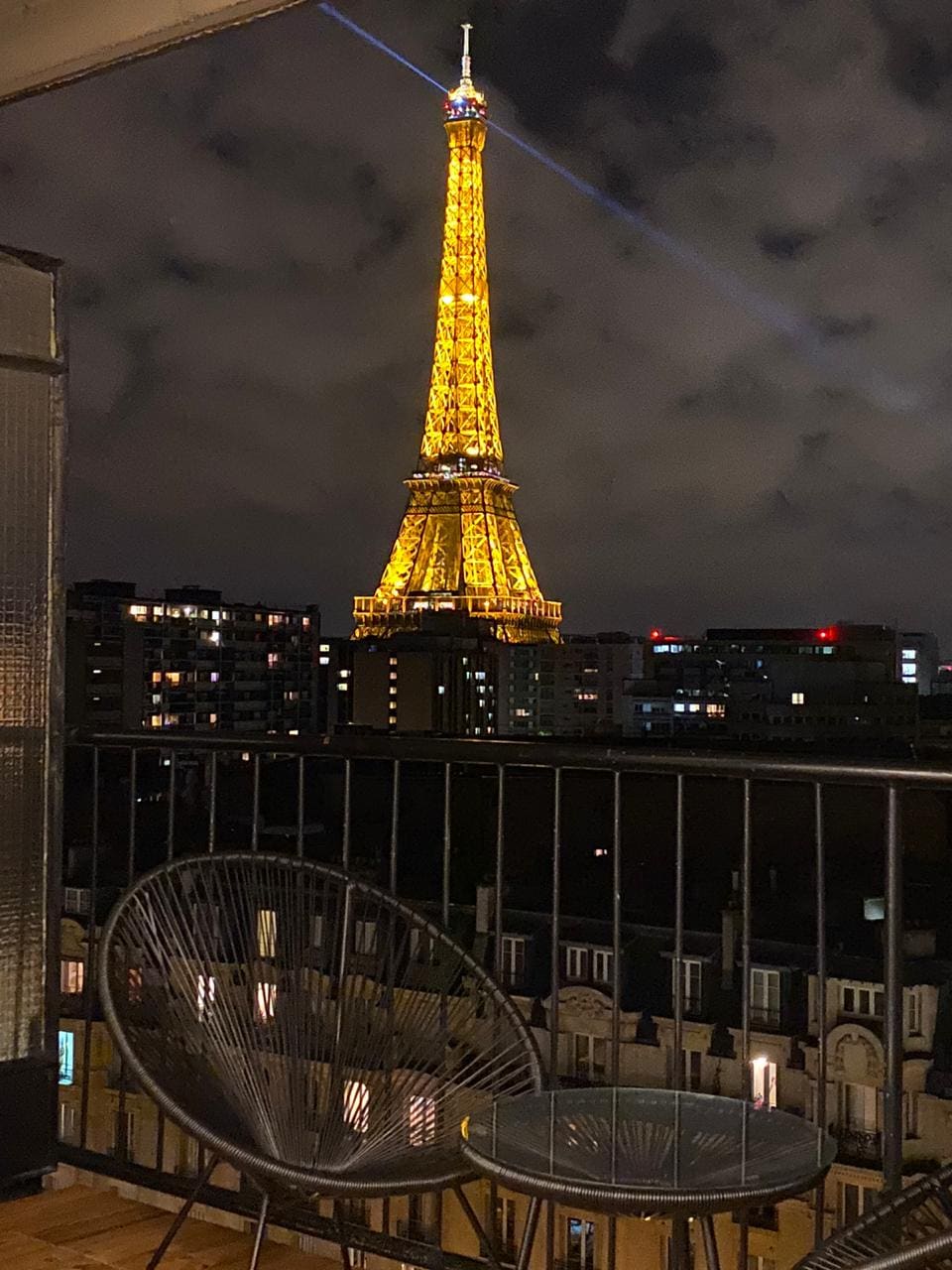 Fully renovated and refurbished studio with the most amazing view of the Eiffel Tower and most Parisian monuments. Wake up to the breathtaking sight of the Eiffel Tower right from your queen-size bed. The large French windows and the balcony make the experience even more memorable. The studio is located 10 min walk from the Eiffel Tower and 4 min walk from Metro stations. The building is safe, and there are plenty of shops and restaurants in the neighborhood. A/C, High Speed broadband, Netflix