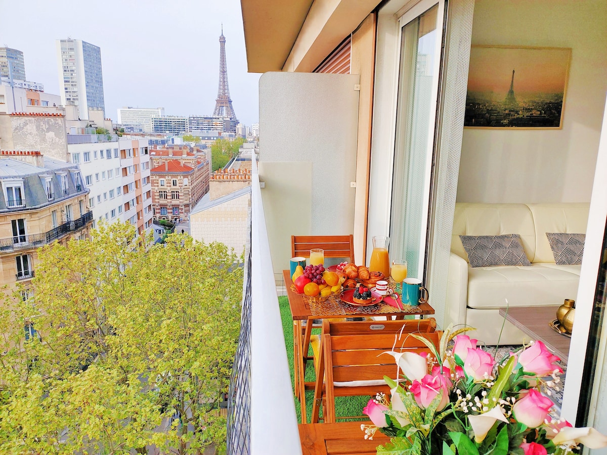 Parisian experience, in a luxurious apartment, on a high floor, bright and high-end. Its breathtaking view of the Eiffel Tower allows you to enjoy unique moments and admire the sunset. The metro is located at the foot of the building, as well as the taxi station and the tourist bus that takes you to the main Parisian monuments. Lively neighborhood with restaurants, cafes, shops, and markets. The Eiffel Tower is a 10-minute walk away and the RER C is a 5-minute walk to the Palace of Versailles