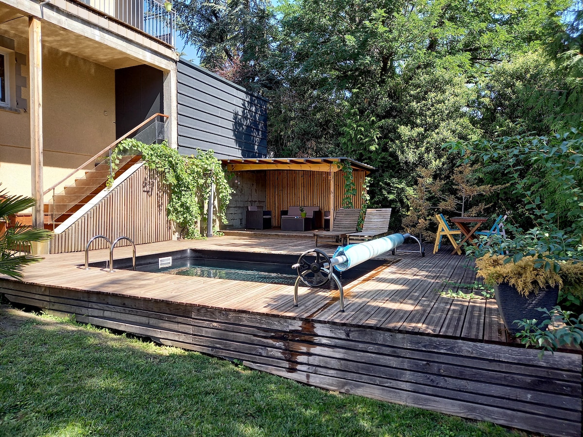 Profitez d'un écrin de verdure proche du centre ville. Très bien situé, aussi bien pour partir en randonnée que pour visiter la ville. Place de Jaude 20mn à pied/10mn en bus (bus à deux pas de la maison) Ski à 1h de route Vulcania, le Puy de Dôme et Thermes de Royat à env 10mn en voiture. Grand séjour avec canapé convertible (maison du convertible) , cuisine US Chambre lit king size ou lit jumeaux (EMMA) Terrasse et piscine plein sud Idéal pour un séjour touristique ou professionnel.
