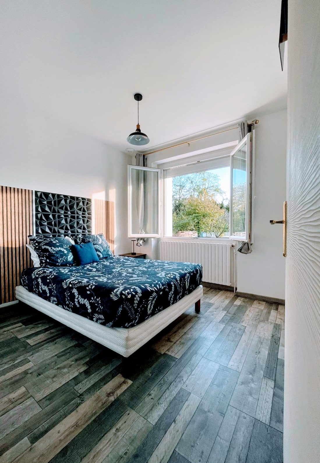 Bienvenue dans La Biche : une maison ancienne de caractère entiérement restaurée en 2018 avec 3 chambres et deux salles de bain. Les exterieurs : côté sud, petite cour fermée avec terrasse et mobilier de jardin et côté nord, un préau avec une table pour prendre ses repas et un jardin pour profiter des journées chaudes de l'été. A proximité : la prairie avec son trampoline, terrain de boules et le ping-pong et en contrebas l'accès à La Vienne pour se détendre, lire et même s'y baigner.