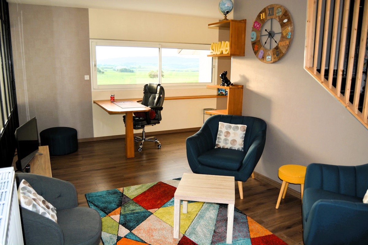 Au Creux de l’Areuse, appartement thématique : ✈️ Voyage Industriel 🖤🧳 Embarquez à bord et laissez ce logement vous surprendre dans son univers unique. Un endroit parfait pour vous permettre de vous reposer à proximité de nombreuses activités dans la région du Val-de-Travers.🌳🏘 : 50m de belles randonnées ⛰🗺 700m de la gare 🚉 1km de la via ferrata 🧗🏼♂️ 2km des Mines d’asphalte ⛑🔦 3km de l’absintherie 🍾🥂 5km des Gorges de l’Areuse 🏞 7km du Creux du Van 📸🇨🇭 23km de la ville de Neuchâtel🏢🌃