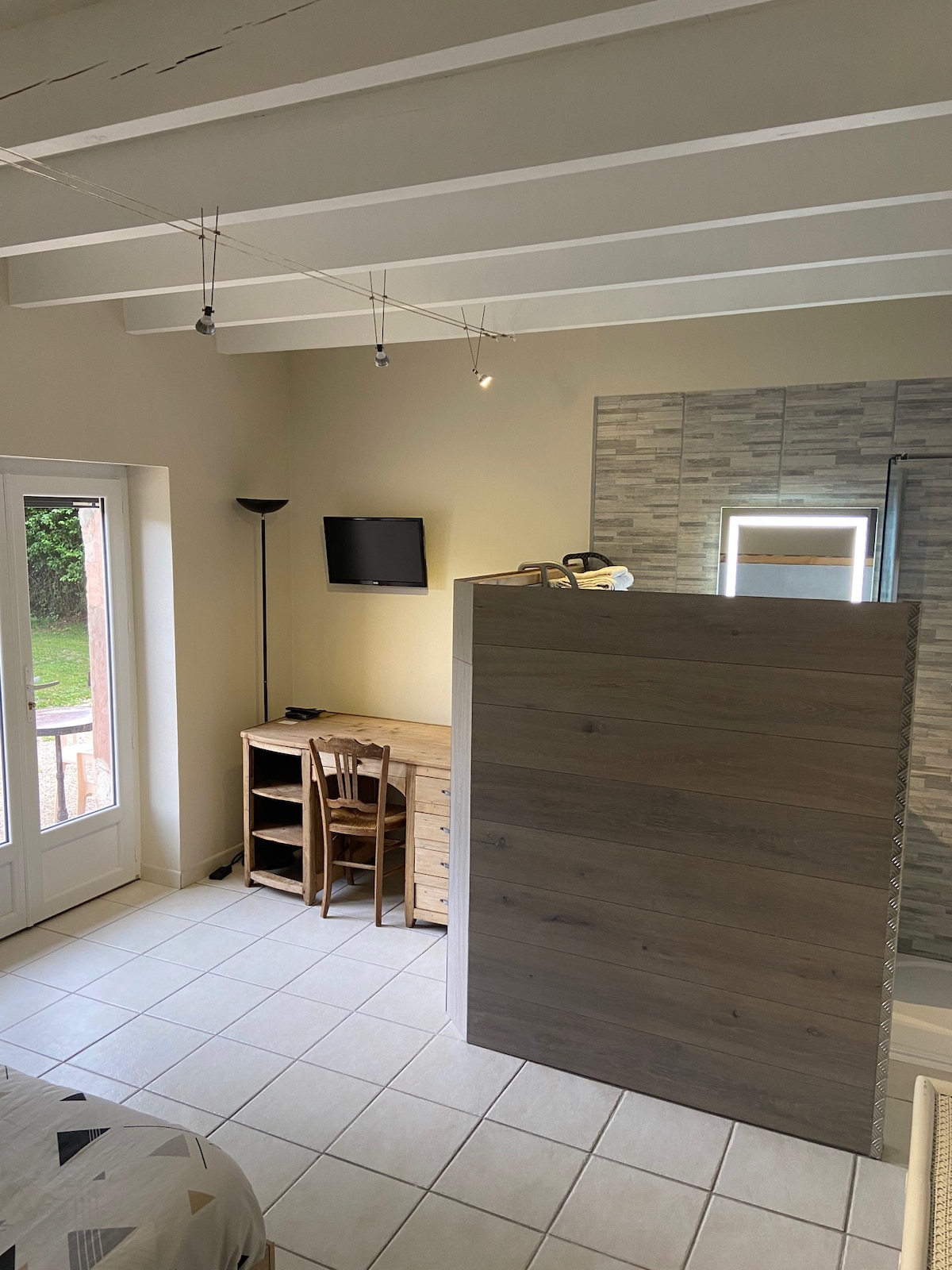 Chambre de 30 m2 très lumineuse avec accès à une terrasse. Salle d’eau avec grande douche, sèche-cheveux, savon invité. Literie haut de gamme 160 cm Mise à disposition cafetière, bouilloire dans la chambre Accès privatif par escalier extérieur Attention : le logement ne possède pas de cuisine. Piscine de 10mx5m chauffée, traitement au sel, serviettes de bain fournies. La piscine est accessible en période estivale de 10h à 19h Les arrivées se font à partir de 16 h. Les départs avant 11 h