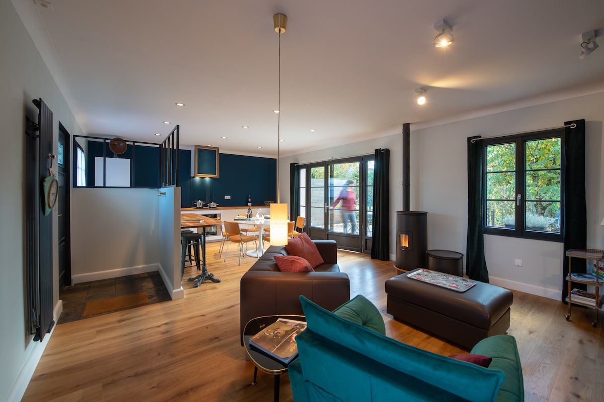 Charming Stone House with an enclosed, private garden, located in Beaune, between the Hospices de Beaune and the Vineyards. 1885 Built Stone House Renovated with fine taste in 2019. Dine by the fireplace, lunch in the garden, ideal position less than 10 minutes walk from the city center. Bike rental and grocery store around the corner. 2 wheels welcome in the garden. Design. Kingsize Bed. Quality linens. Equipped Kitchen, BBQ, Deckchairs. Washer. Dryer. Free Street Parking.
