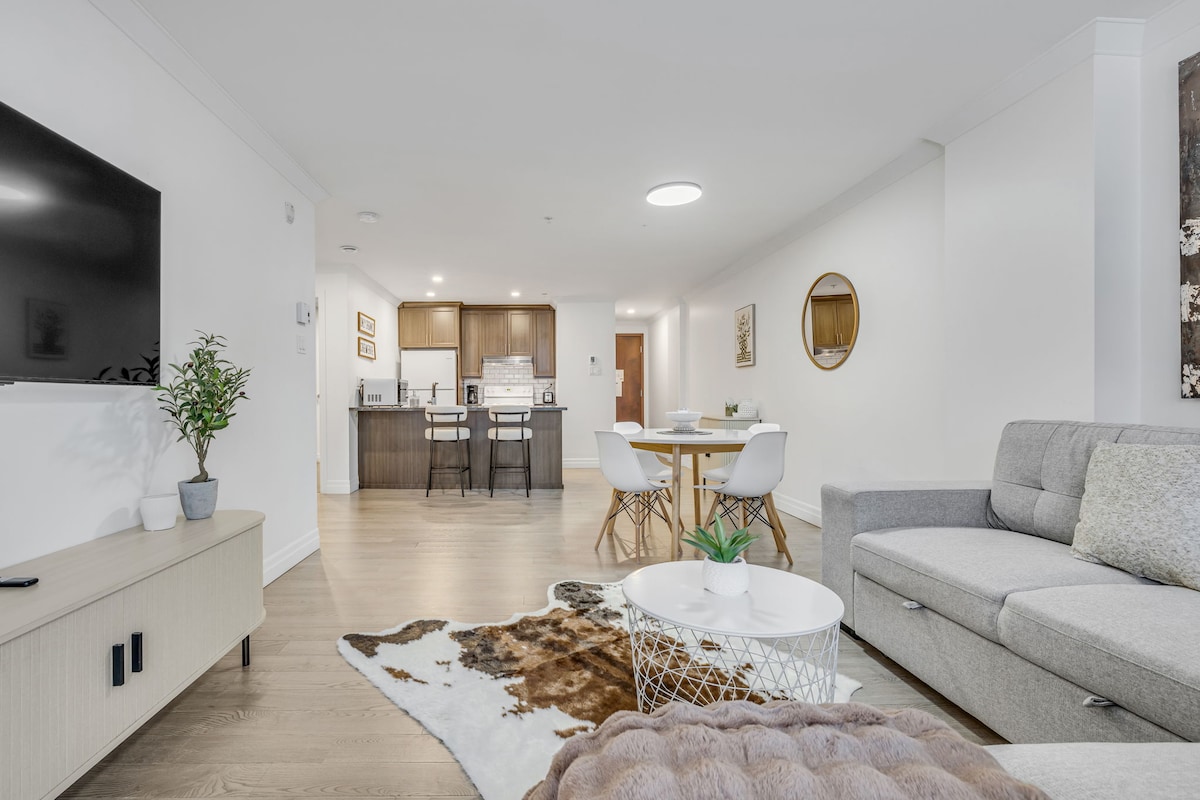 Feel home at this new condo located in beautiful Île d'Orléans. The place is perfect for a relaxing retreat or as a base for remote work. It has minimalist design & quite spacious. HUGE outside balcony to enjoy view & sunsets. It is equipped with a functional kitchen, spacious bathroom, AC & high ceilings. It is a corner unit with no neighbor above or below (VERY quiet), so you can enjoy a perfect sleep away from the city's noises. Parking is easy and conveniently located next to the unit.