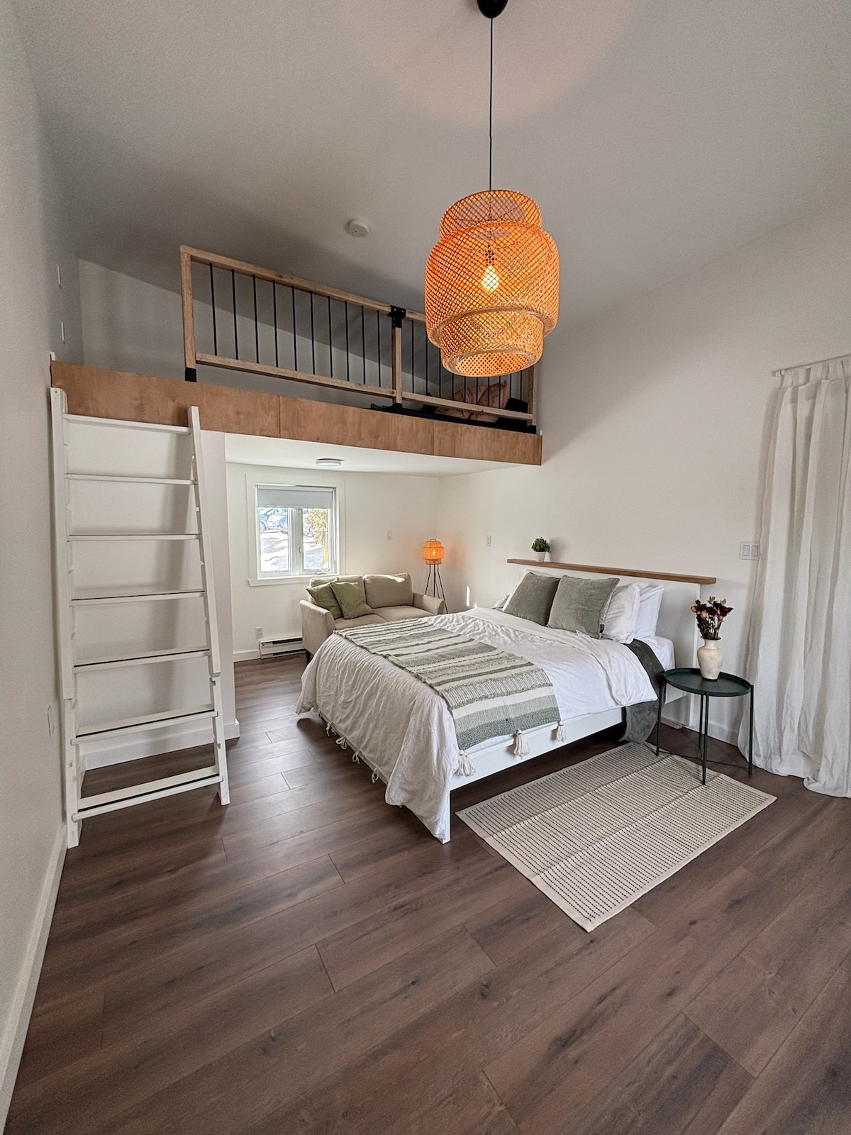 Quiet quiet chic loft Safe neighborhood Free parking Private area equipped kitchen Petit gem of quality is looking for 2 distinguished travelers to live a memorable experience. Close to Momorency Falls, Île d'Orléans and Old QC. Perfect choice close to town & attractions. Quiet, soundproofed, comfortable place, feel like home and as comfortable as in a hotel. Gym Locker Wifi Portable air conditioner Smart TV with premium Massage therapy *Taxes inc