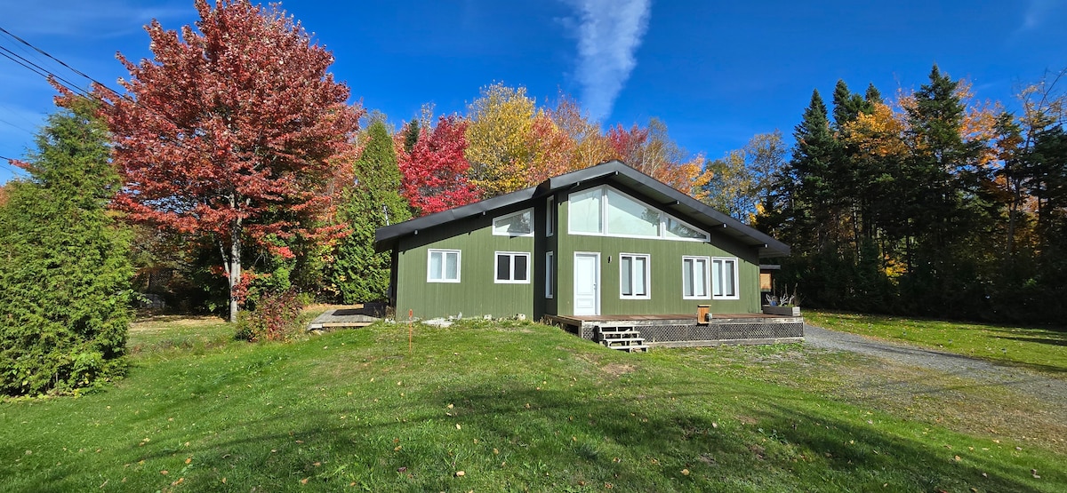 Welcome to Horizon, a magnificent cabin nestled in the heart of an enchanting landscape, at 565 meters above sea level. The bike-in/bike-out experience on the mountain bike, fatbike, snowshoe and hiking trails of the Sentiers du Moulin. This quiet and intimate refuge offers stunning views of the surrounding peaks and allows you to fully immerse yourself in nature. The chalet can accommodate up to 6 people thanks to its catamaran net!