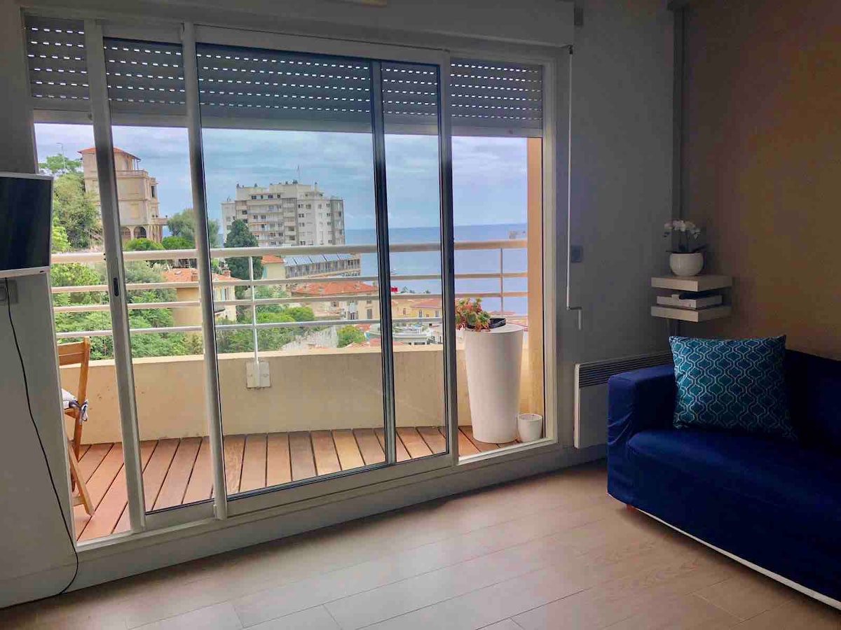 Studio de 30m2 neuf tout confort à 30m des plages et 200m de la gare. Séjour avec lit 2 places rabattable (matelas haut de gamme), canapé convertible 1 places, TV, Internet. Cuisine indépendante avec lave-linge, lave vaiselle, micro-onde, réfrigérateur, Nespresso, nécessaire de cuisine à disposition. Salle de bain avec douche à l'italienne et WC indépendant. Linge de maison à disposition. Terrasse de 6m2 avec salon de jardin. 10 min de Monaco et 20 min de Nice. possibilité parking 10€ jour