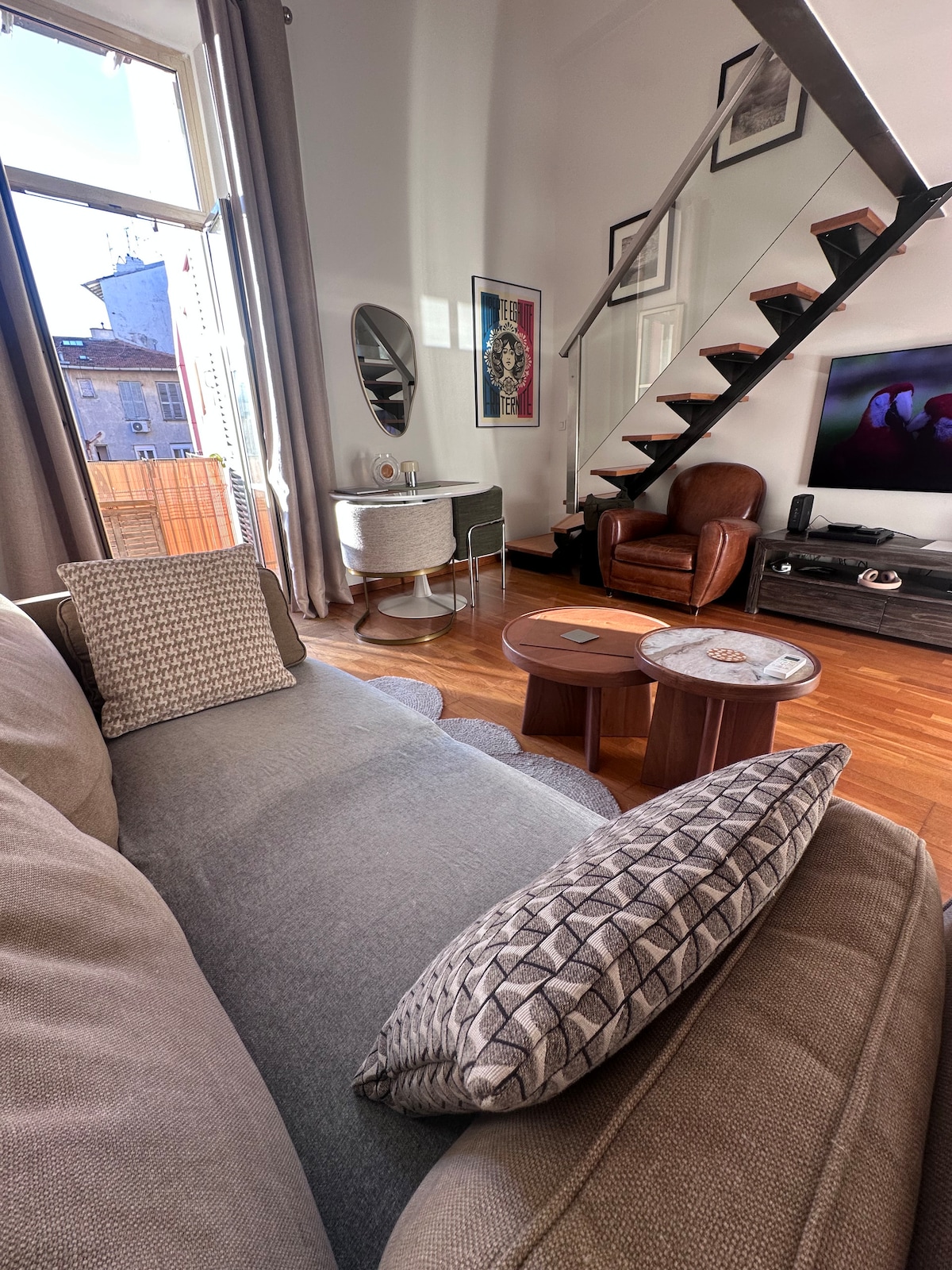 60平方米的Loft,距离萨雷亚庭院(Cours Saleya)和海滩仅几步之遥
