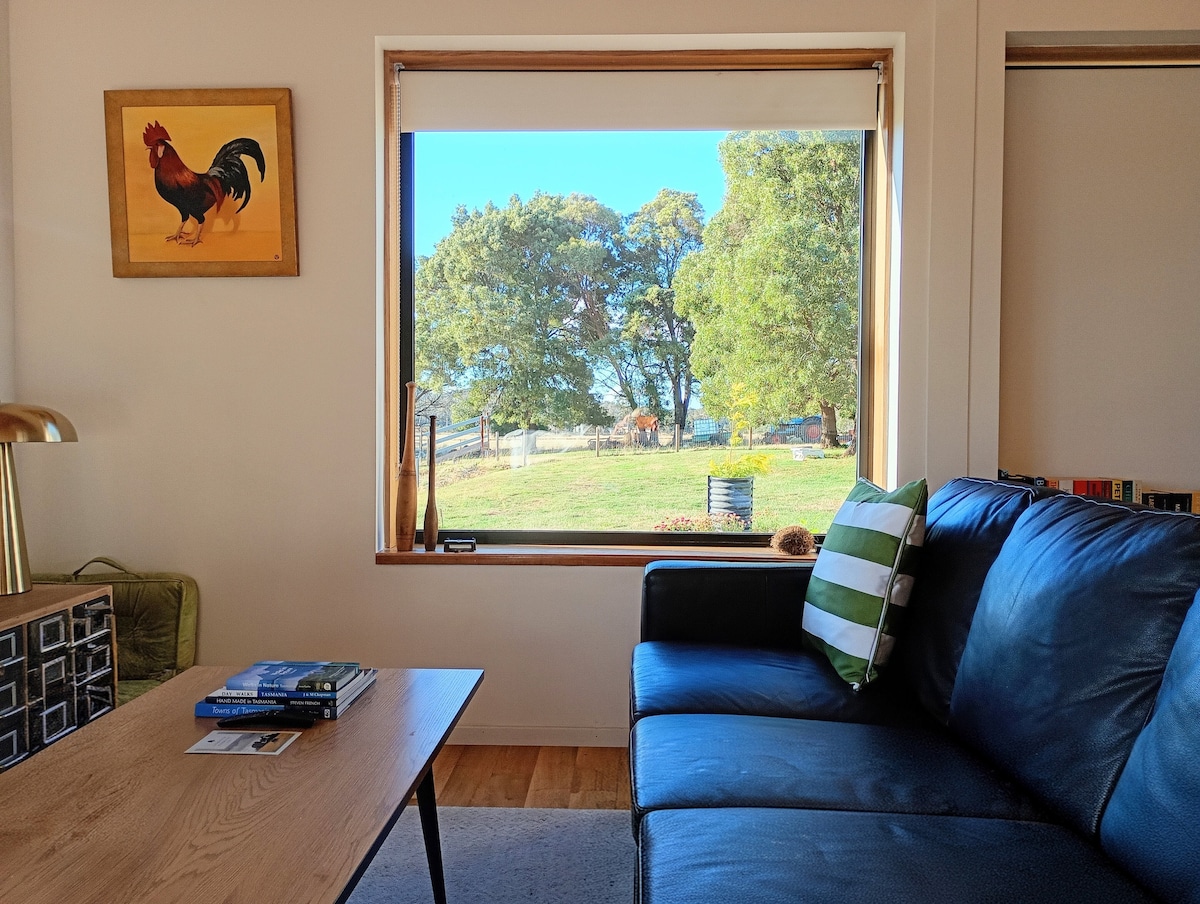 Modern, eco- friendly, warm and cosy. Situated near the hosts' period home on a growing hobby farm. Great views of Mount Roland from the courtyard. Close by to the town of Sheffield for all your grocery needs, coffee shops and eateries. Perfectly situated near Cradle Mountain, Tasmazia, Lake Barrington and only 20 minutes from Devonport.
