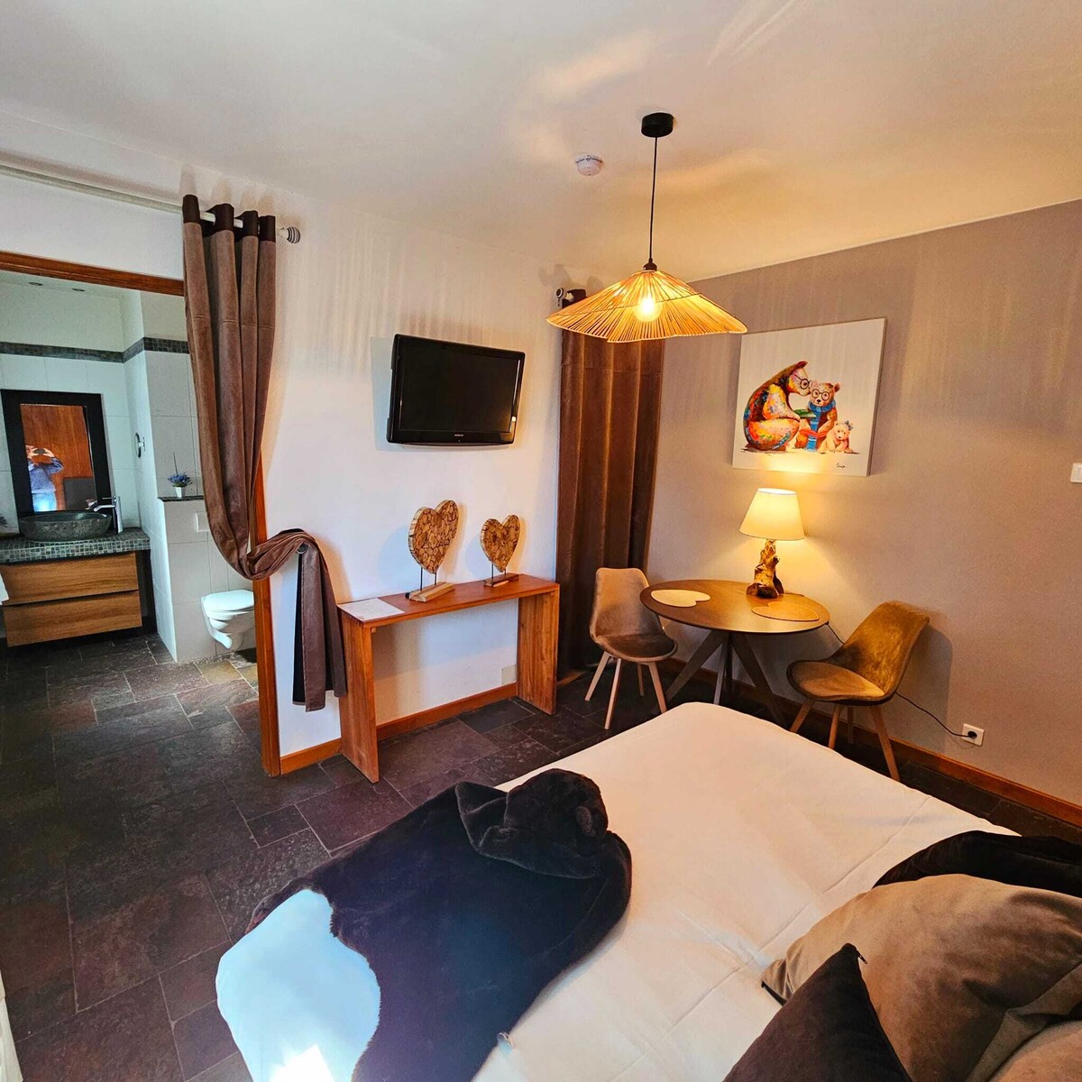 Voyageur avec chien me contacter avant réservation ! Laisser vous guider par Doudou notre chat maître d'hotel (ou moi-même s'il est occupé) dans le jardin gourmand et un peu sauvage, la petite rivière au fond du jardin, avec les cocottes en liberté, les sculptures... puis la maison et vos chambres. Ici les cloches de l'église vous berceront et chant du coq en réveil, la télé c'est le poêle à bois. Nous serons ravis de vous accueillir dans notre petit paradis bucolique et joyeusement imparfait