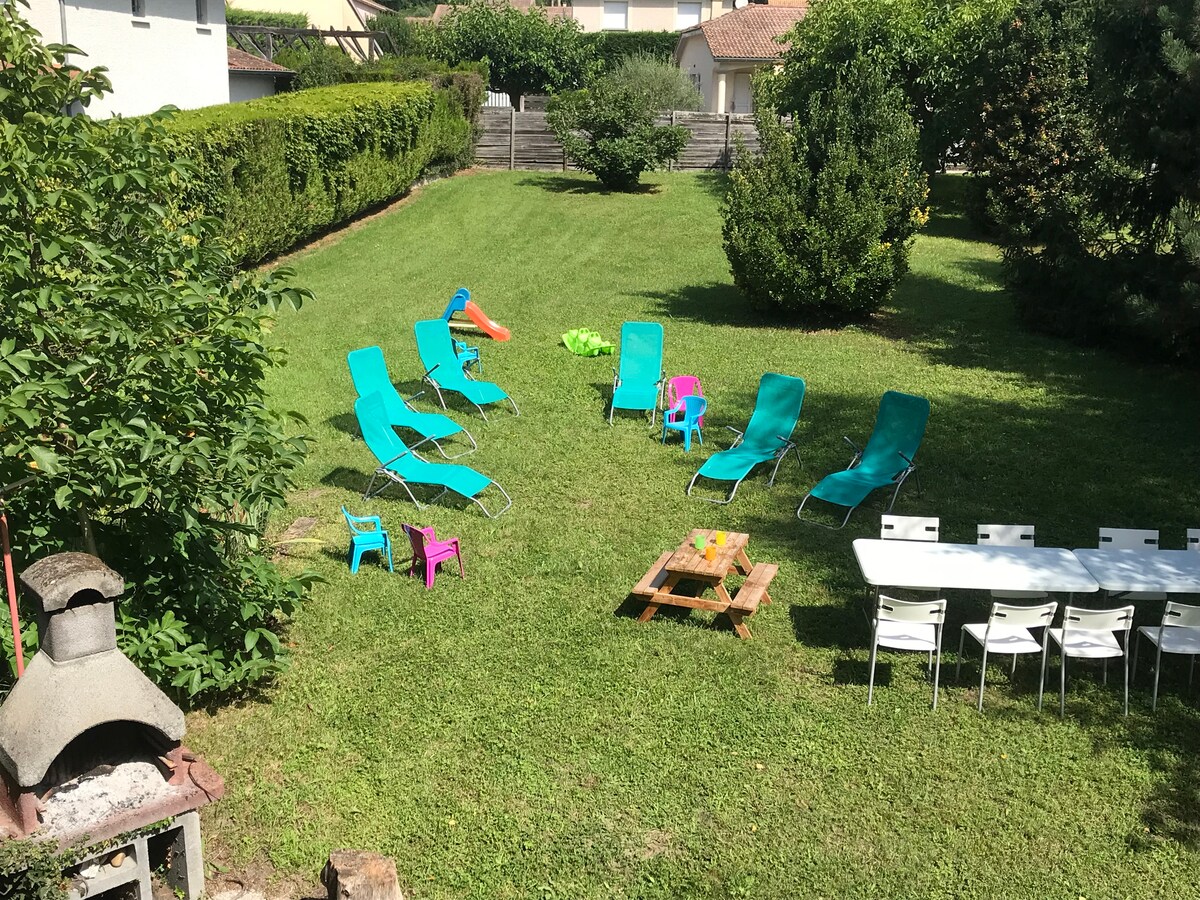Cette maison paisible offre un séjour détente pour toute la famille. Entre ville et campagne, une Villa indépendante avec jardin à moins d'une demi-heure de Lyon, avec une belle pièce à vivre, 3 chambres, SDB, deux terrasses, parking dans la propriété et jardin. Proche toutes commodités, très bel environnement, rivière pas trop loin.