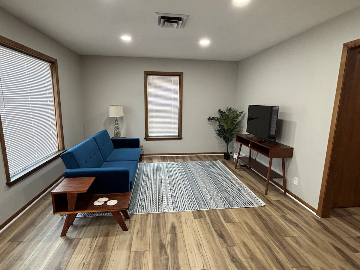 Enjoy a clean and stylish experience in the Juni Suite. Cook all your meals in the well equipped kitchenette, soak it up in the deep bathtub, and stay warm by the fireplace. A queen size memory foam bed and blackout roller shades will help you sleep soundly. The convertible sofa is easy to expand to a full size. Protect your vehicle in the off-street covered parking stall which is only a short walk to the entrance (7 stairs up and 13 down). Close to Union College/Shops.