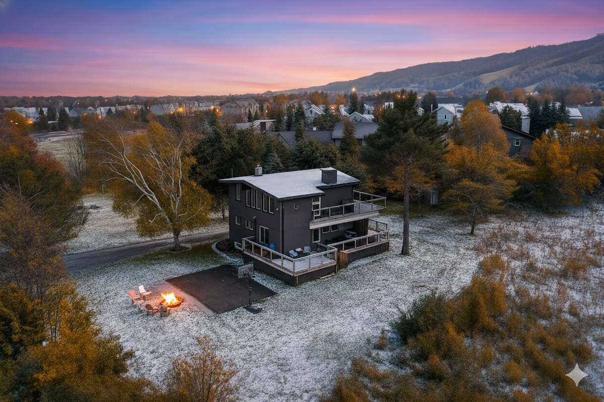 We would love to share our vacation chalet with you. This ski chalet has everything and more! We have an outdoor Hot Tubs, an indoor Sauna, and Entertainment such as a Pool Table, video games and a large 75 inch HD TV for your movie nights. Surround your friends/families around our renovated Kitchen, large Centre Island and large Dining Room Table. Seat in our covered Sunroom to have a morning coffee or enjoy your BBQ food all year round. Only 7 min walk to the Village