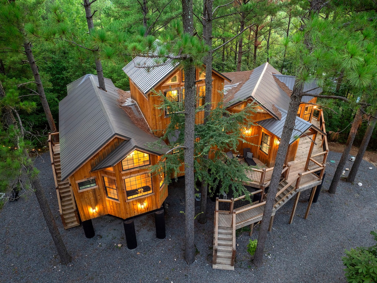 Welcome to Blushing Beaver, a romantic Scandinavian-style treehouse retreat for two. 🧖♀️ Nordic Barrel Sauna 🌊🌊 2 Creeks 🪢 Hanging Swing 🛁 Spa Bathroom w/ Dual Rainfall Showers 🔥 3 Fireplaces 💦 Hot Tub w/ Forest Views 🛏 Soaking Tub 🧖♀️ Robes 🧴 Beekman 1802 Luxury Toiletries ✭ "Romantic, peaceful, and still. Sitting on the side of a hill, looking into the trees. I would absolutely stay again. Website pictures are a true description"