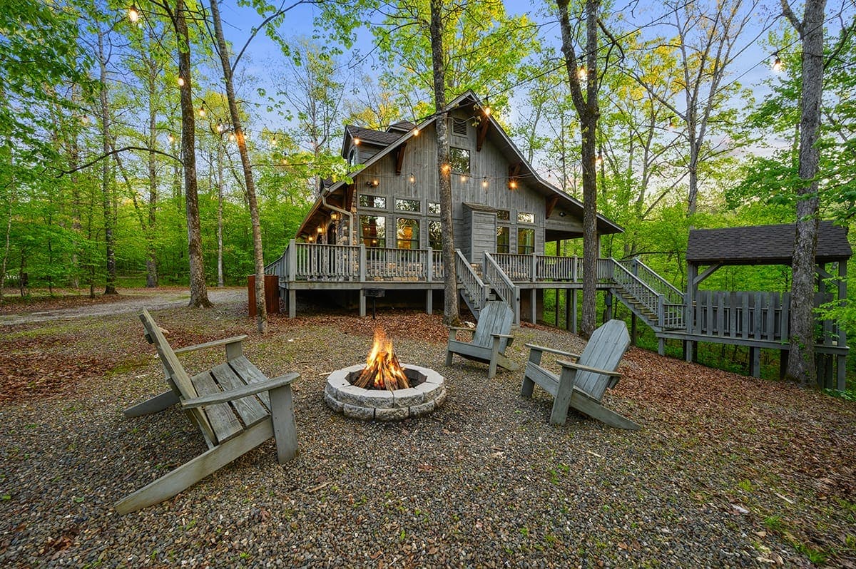 Champagne Nights was crafted with a level of craftsmanship unmatched by others. From its high-end finishes throughout to the state-of-the-art kitchen, the attention to detail and interior design has been curated to deliver the highest level of luxury. The outdoor space offers a built-in gas grill, patio with SmartTV, Jacuzzi, and two fire pits. Enjoy a seasonal creek just steps away, offering sounds of peacefulness, all surrounded by towering pines. This property has a strict, no pet policy.