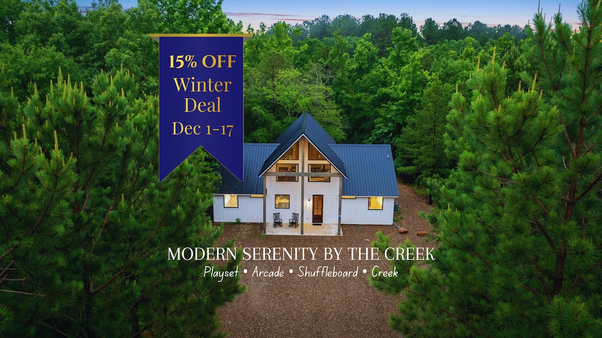 Introducing The Onyx Escape in Broken Bow Oklahoma! A true Honeymoon cabin experience. Discover the unparalleled serenity, nestled amidst the picturesque Ouachita National Forest. This spacious 1100 square ft. cabin boasts contemporary design and luxurious amenities to ensure your utmost relaxation and rejuvenation. The cabin showcases a vast outdoor living space surrounded by towering pine trees. Soak in the hot tub or cozy up by the fire while taking in the nature that surrounds you.