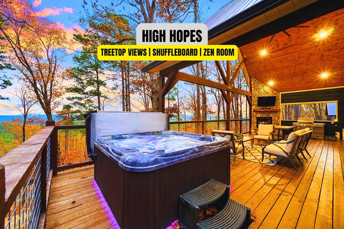 The Legend of Broken Bow by @TheVacayGetaway ⭐️New, luxury cabin on a wooded lot with expansive mtn views ⭐️TREX MURAL, life-sized dinosaurs, slide/rock climbing/arcade ⭐️Hot tub, putt putt, hammock chairs, cornhole, outdoor TVs ⭐️Two large decks with outdoor fireplace/dining/lounges ⭐️2 King ensuite bedrooms+twin over twin bunk bed landing ⭐️Gas grill/wood burning firepit ⭐️ROKU TVs in every room ⭐️Keurig/drip coffee 🚙 Pkg for 4, EV plug 📍 8 mi Hochatown 📍 9 mi Beaver's Bend
